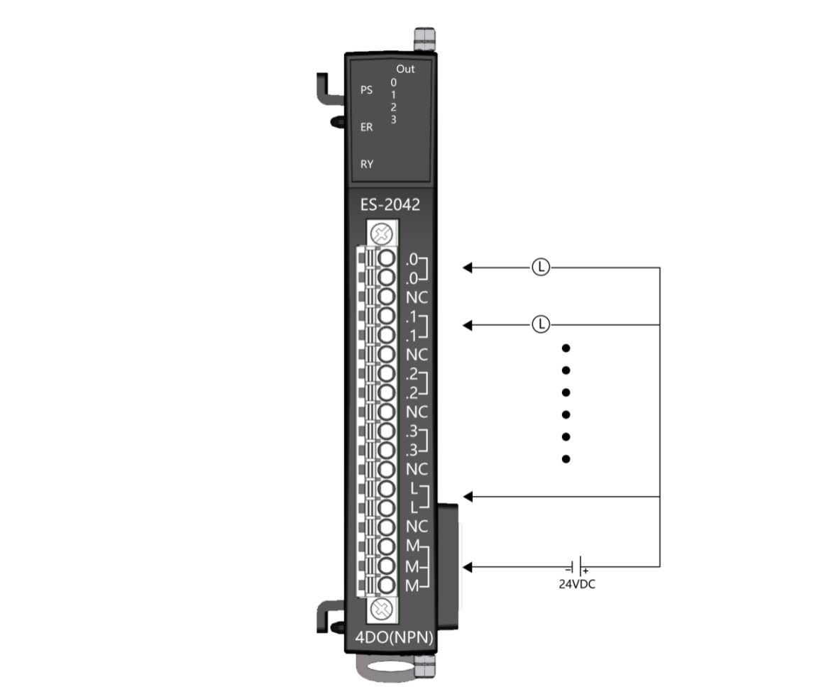 薄片型多功能分布式I/O,數字量4出,晶體管,NPN輸出,單通道 2A,24VDC