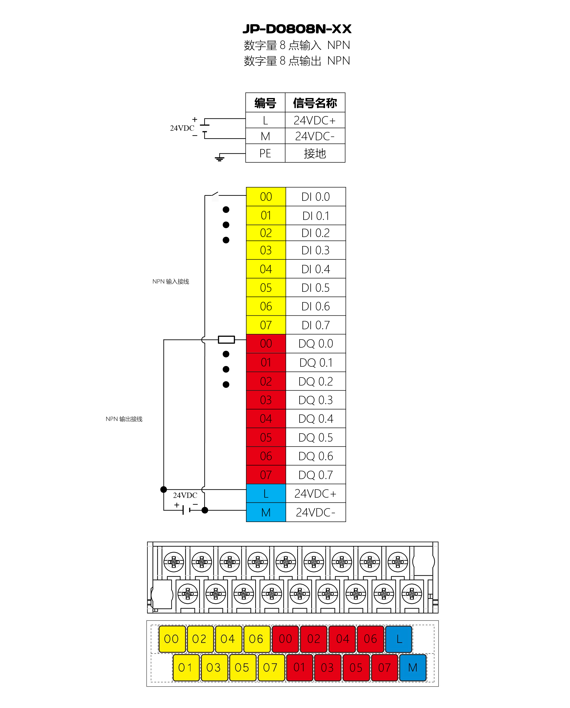 柵欄式螺釘分布式I/O,雙網口,可級聯,支持PROFINET RT協議,8DI_NPN,8DO_NPN,0.5A,24VDC