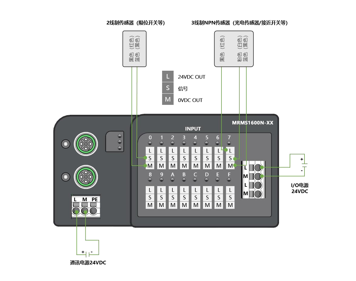 面板式快接線分布式I/O,PROFINET通訊,2xM12,可級(jí)聯(lián);數(shù)字量16入 NPN,24VDC,歐式彈簧端子;導(dǎo)軌安裝&打孔安裝(下單時(shí)需備注)